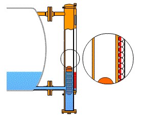 換熱器工作介質為易汽化的液體,壓力從真空狀態到2.5Mpa之間,溫度從40℃到390℃之間,因此液位計的日常維護及指示的準確性,對壓力容器的安全運行起到至關重要的作用。