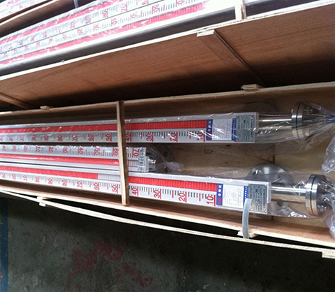 磁翻板液位計(也可稱為磁性浮子液位計)根據浮力原理和磁性耦合作用研制而成。當被測容器中的液位升降時,液位計本體管中的磁性浮子也隨之升降,浮子內的永久磁鋼通過磁耦合傳遞到磁翻柱指示器,驅動紅、白翻柱翻轉180°,當液位上升時翻柱由白色轉變為紅色,當液位下降時翻柱由紅色轉變為白色,指示器的紅白交界處為容器內部液位的實際高度,從而實現液位清晰的指示。