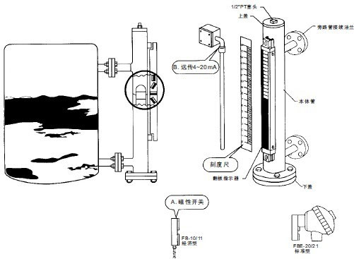 二、液位計現(xiàn)場投用時,要特別留意應先翻開上部閘閥,后翻開下部閘閥。這是由于液位計連通管的底部裝有維護浮子的止推彈簧,否則,大差壓的作用可能撞碎浮子招致液位計無法運用。