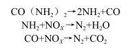 在丙酮液位計房外新建脫硝加藥站一座。五臺丙酮液位計共用脫硝站,每臺丙酮液位計單獨配套噴射系統。袋裝顆粒尿素由汽車運輸至廠區,卸料在顆粒尿素堆料區。袋裝尿素人工破袋后,倒入尿素溶解罐料斗進入罐中,攪拌溶解配置成50% 濃度的尿素溶液后通過輸送泵輸送至尿素溶液儲罐存儲備用 ;尿素溶液由尿素溶液循環輸送模塊輸送到計量稀釋模塊,精確計量脫硝反應所需的尿素溶液量并采用軟化水進一步稀釋至約10% 濃度后,送至丙酮液位計側噴槍安裝位置附近的分配模塊,分配模塊出口至每支噴槍。噴槍利用壓縮空氣將稀釋后的尿素溶液霧化噴入高溫煙氣中。尿素在爐內熱解生成 NH 2 和 CO,在高溫下選擇性還原氮氧化物。其化學反應如下 :