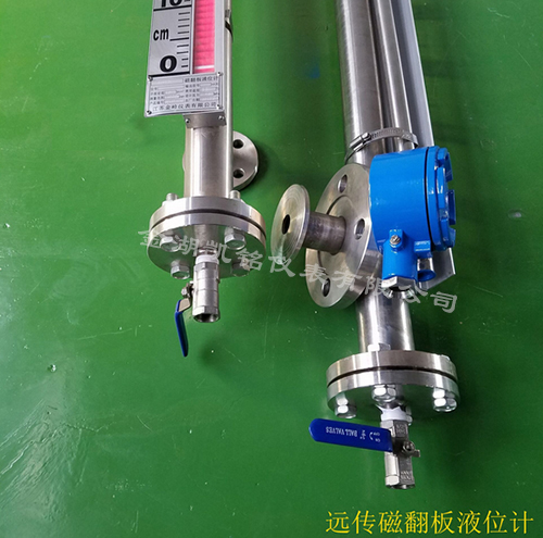 液位計根據浮力原理,浮子在測量管內隨液位的升降而上下移動,浮子內的永久磁鋼通過磁耦合作用,驅動紅、白色翻柱翻轉180’液位上升時,翻柱由白色轉為紅色,下降時,翻柱由紅色轉為白色,從而實現液位的指示。