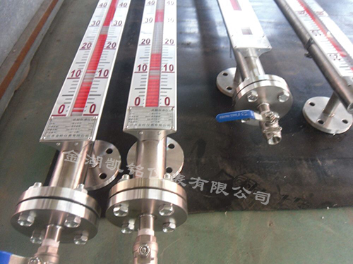 磁翻板液位計是具有可靠的安全性儀表。由于具有磁性藕合隔離器密閉結構。尤其適用于易燃、易爆和腐蝕有毒液位檢測。從而使原復雜環境的液位檢測手段變得簡單和可靠安全。具有就地顯示的直讀式特性。不需多組液位計組合。有著單體進行全量程測量。設備少開孔,顯示清晰,標志醒目,讀數直觀等優點。當液位計直接配帶顯示儀時可省去該系統信號檢測的中間變送從而提高其傳輸精度。
