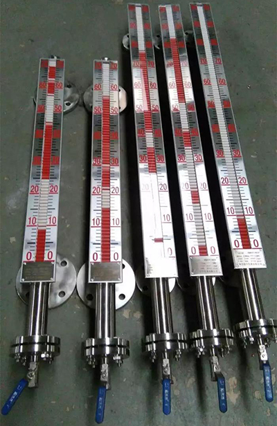 根據浮力原理,浮子在測量管內隨液位的升降而上、下移動,浮子內的永久磁鋼通過耦合作用,驅動紅、白色翻柱翻轉180°,液位上升時翻柱由白色轉為紅色,下降時由紅色轉為白色,從而實現液位指示。