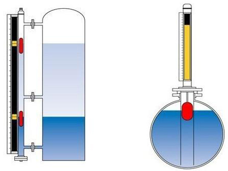 液位計(jì)根據(jù)浮力原理,浮子在測量管內(nèi)隨液位的升降而上下移動(dòng),浮子內(nèi)的永久磁鋼通過磁耦合作用,驅(qū)動(dòng)紅、白色翻柱翻轉(zhuǎn)180’液位上升時(shí),翻柱由白色轉(zhuǎn)為紅色,下降時(shí),翻柱由紅色轉(zhuǎn)為白色,從而實(shí)現(xiàn)液位的指示。