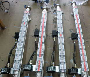 磁翻板液位計(也可稱為磁性浮子液位計)根據浮力原理和磁性耦合作用研制而成。當被測容器中的液位升降時,液位計本體管中的磁性浮子也隨之升降,浮子內的永久磁鋼通過磁耦合傳遞到磁翻柱指示器,驅動紅、白翻柱翻轉180°,當液位上升時翻柱由白色轉變為紅色,當液位下降時翻柱由紅色轉變為白色,指示器的紅白交界處為容器內部液位的實際高度,從而實現液位清晰的指示。