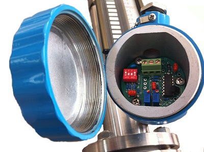 在浮子液位計上安裝變送器,通過浮子上下移動,經磁耦合作用使導桿內測量元件依次動作,獲得電阻信號變化,轉換成0~10mA或4~20mA的標準信號輸出,與顯示儀表或計算機連接,達到遠傳目的。