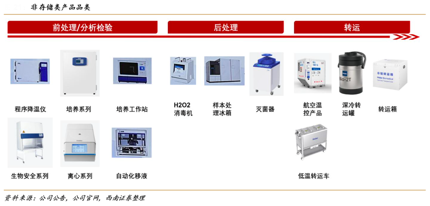 經典案例:根據(jù)公司公告、公司官網(wǎng)、西南證券等綜合資訊表明,海爾生物公司以低溫存儲業(yè)務為立身之本,并堅持自主創(chuàng)新。隨后,公司在產品豐富度上不斷發(fā)力,圍繞生命科學領域實驗室常用設備持續(xù)開拓新品類,從最初的生物安全柜、潔凈工作臺、二氧化碳培養(yǎng)箱,到最近開始布局的離心機、程序降溫儀、凍干機等多種產品,實現(xiàn)了多品類產品的全面覆蓋。