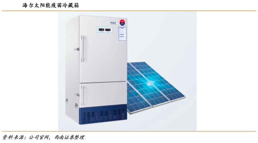 經典案例:根據(jù)公司官網(wǎng)、西南證券等綜合資訊表明,聯(lián)合國兒童基金會啟動了新一輪的全球免疫規(guī)劃項目。在這個全球性的項目中,海爾太陽能疫苗冰箱其差異化產品的設計是純太陽能供電,完全不依賴電力或燃料,而且一次使用可保溫長達 7 天,非常適合于缺電或無電的非洲偏遠地區(qū),保證兒童接種疫苗 的安全。此外,海爾太陽能疫苗冰箱還通過了世界衛(wèi)生組織(WHO)23 項嚴格的檢驗,其A級防凍保護技術可確保箱內溫度更加均勻,從而避免疫苗凍 結。