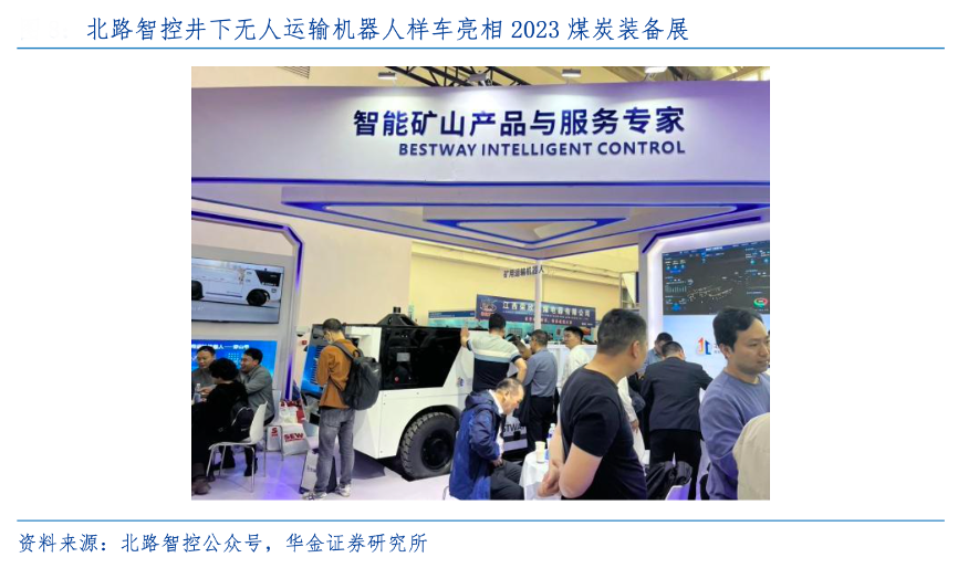 經(jīng)典案例:根據(jù)北路智控公眾號(hào)、華金證券研究所等綜合資訊表明,北路智控公司在 2023“第二十屆中國(guó)國(guó)際煤炭采礦技術(shù)交流及設(shè)備展覽會(huì)”亮相井下無(wú)人運(yùn)輸機(jī)器人 “穿山甲”,該款運(yùn)輸機(jī)器人深度融合 5G、數(shù)字建模、無(wú)線通信、UWB 精準(zhǔn)定位、機(jī)器視覺(jué)、慣性導(dǎo)航等技術(shù),采用全時(shí)四驅(qū)、雙向行駛的獨(dú)特設(shè)計(jì)和智能操作系統(tǒng),實(shí)現(xiàn)對(duì)無(wú)衛(wèi)星導(dǎo)航、空間狹小、防爆要求高、工況復(fù)雜條件下的井下環(huán)境 360°全方位感知與障礙物識(shí)別。為了滿足礦方多 樣化的需求,穿山甲可自由切換遙控駕駛、遠(yuǎn)程駕駛、自動(dòng)駕駛等模式,按照預(yù)設(shè)的駕駛模式及 路線規(guī)劃,安全高效完成運(yùn)輸任務(wù)。