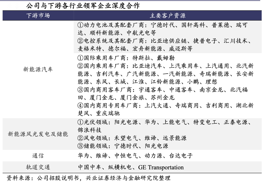 經(jīng)典案例:根據(jù)公司招股說明書、興業(yè)證券經(jīng)濟(jì)與金融研究院等綜合資訊表明,在新能源汽車市場(chǎng),伴隨著新能源整車與電池行業(yè)競(jìng)爭(zhēng)集中度不斷提升,中熔電氣公司與下游頭部企業(yè)深度合作,有助實(shí)現(xiàn)業(yè)績(jī)的跨越性增長(zhǎng)。此外,風(fēng)光發(fā)電及儲(chǔ)能市場(chǎng)客戶包括華為、陽光電源等,通信客戶包括華為、維諦等,軌交客戶包括中國(guó)中車、縱橫機(jī)電等。