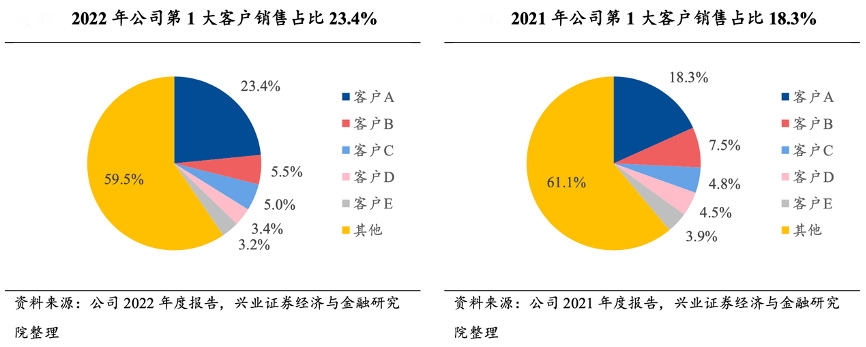 經(jīng)典案例:根據(jù)公司2022年度報(bào)告、興業(yè)證券經(jīng)濟(jì)與金融研究院等綜合資訊表明,2021 和 2022 年,中熔電氣公司對(duì)前五大客戶銷售占比分別為 38.9%和 40.5%,維持在合理區(qū)間。其中,第 1 大客戶的銷售占比水平稍高,2021 年和 2022 年分別為 18.3%和 23.4%,其業(yè)績(jī)基本未對(duì)前五大客戶形成依賴,有效規(guī)避銷售風(fēng)險(xiǎn),維持穩(wěn) 定營(yíng)收水平。