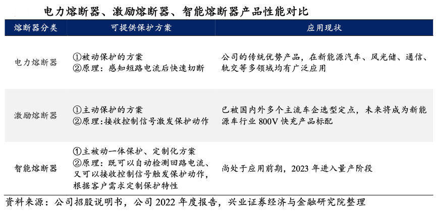 經(jīng)典案例:根據(jù)公司招股說明書、公司2022年度報告、興業(yè)證券經(jīng)濟與金融研究院等綜合資訊表明,新能源汽車和風光儲行業(yè)應用電壓不斷提高,對熔斷器的性能也提出更高要求,中熔電氣公司推出激勵熔斷器和智能熔斷器,以快速響應下游產(chǎn)業(yè)需求。激勵熔斷器允許用戶提前設定好條件,接收控制信號后發(fā)生熔斷,這是一種主動保護的方案。