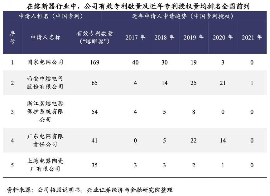 經(jīng)典案例:根據(jù)公司招股說明書、興業(yè)證券經(jīng)濟與金融研究院等綜合資訊表明,中熔電氣公司 2010 年即被認定為“高新技術(shù)企業(yè)”。根據(jù)公司 2022 年度報告,公司及子公司共擁有 199 項國家專利, 包括 3 項發(fā)明專利、192 項實用新型專利、4 項外觀設(shè)計專利,另有多項發(fā)明專利處于申請過程中。其中與熔體結(jié)構(gòu)相關(guān)的有效專利有 52項,熔體是影響熔斷器性能的核心零部件,公司在熔體結(jié)構(gòu)設(shè)計方面能力突出。
