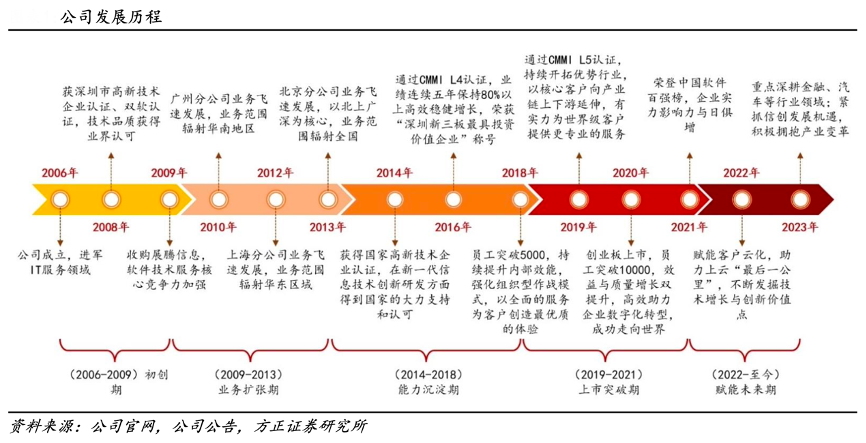 經(jīng)典案例:根據(jù)公司官網(wǎng)、公司公告、方正證券研究所等綜合資訊表明,法本信息公司成立于 2006 年,專注于數(shù)字化技術(shù)服務(wù),致力為客戶提供先進(jìn)的數(shù)字化平臺(tái)、技術(shù)和解決方案。其以數(shù)字化技術(shù)為依托,聚焦自主安全可控的實(shí)時(shí)智能計(jì)算(Real-time Intelligent Computing, RTIC)關(guān)鍵技術(shù)和產(chǎn)品,助力金融、互聯(lián)網(wǎng)、軟件、通信、智能制造和公共服務(wù)等行業(yè)客戶的產(chǎn)品與技術(shù)創(chuàng)新和業(yè)務(wù)變革。