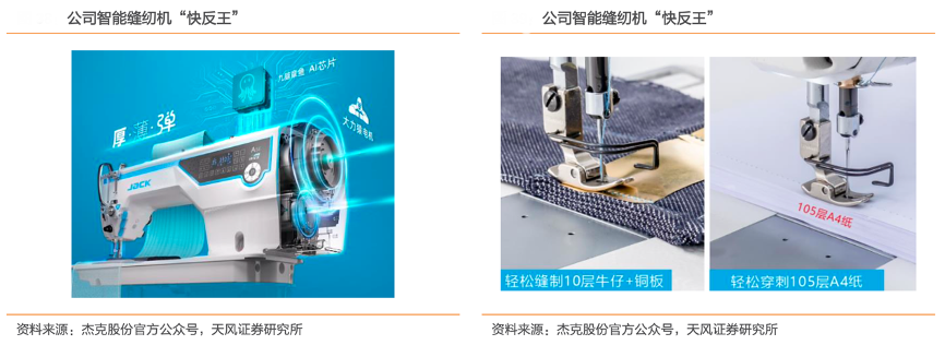 經(jīng)典案例:根據(jù)杰克股份官方公眾號(hào)、天風(fēng)證券研究所等綜合資訊表明,杰克股份公司把握“小單快返”機(jī)遇加大研發(fā)投入,于 2023 年 6 月發(fā)布智能縫紉機(jī)新品—“快反王”。公司歷時(shí)多年打造,聯(lián)合國(guó)內(nèi)外 6 家高校院所和知名機(jī)構(gòu)合作攻關(guān),前后經(jīng)過(guò) 150 多萬(wàn)次的面料測(cè)試實(shí)驗(yàn),研發(fā)投入超億元,最終成功研發(fā)出搭載了九腦章魚(yú)芯片和大力猿電機(jī)的 A.M.H 面料自適應(yīng)系統(tǒng)。