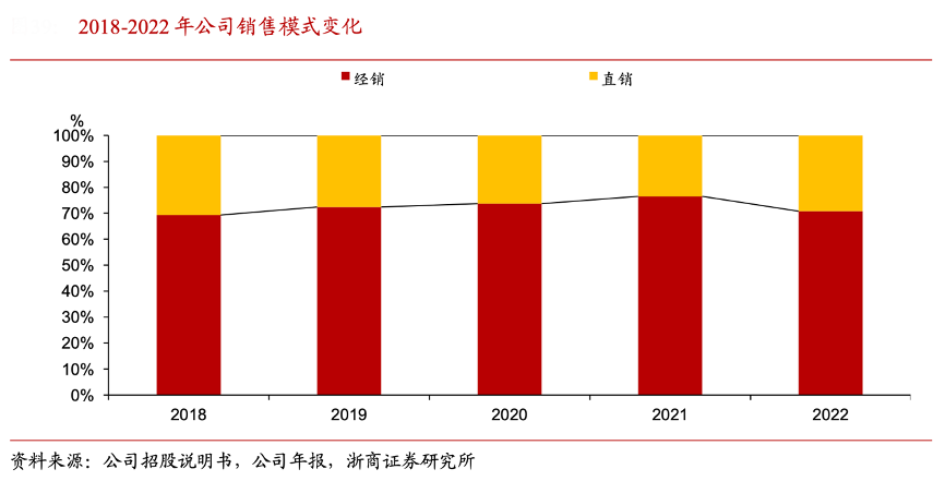 經(jīng)典案例:根據(jù)公司招股說(shuō)明書(shū)、公司年報(bào)、浙商證券研究所等綜合資訊表明,禾川科技公司采用“經(jīng)銷為主,直銷為輔”的銷售模式,對(duì)普通客戶通過(guò)經(jīng)銷商銷售產(chǎn)品,對(duì)部分采購(gòu)量大、產(chǎn)品個(gè)性化要求較高的戰(zhàn)略客戶,則采取直銷模式。2018-2021年,公司實(shí)施行業(yè)聚焦戰(zhàn)略,通過(guò)經(jīng)銷商渠道開(kāi)拓鋰電、光伏等行業(yè)重要終端客戶,經(jīng)銷比例持續(xù)上升。