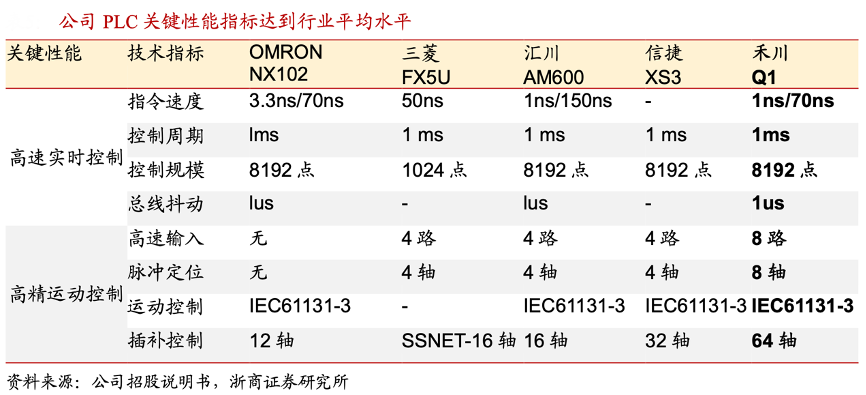 經(jīng)典案例:根據(jù)公司招股說(shuō)明書(shū)、浙商證券研究所等綜合資訊表明,禾川科技在高性能實(shí)時(shí)控制能力上,其產(chǎn)品總體達(dá)到國(guó)外主流廠(chǎng)商的技術(shù)水平;高精運(yùn)動(dòng)控制上,公司已達(dá)到或超過(guò)內(nèi)外資同類(lèi)產(chǎn)品;現(xiàn)場(chǎng)總線(xiàn)控制能力上,公司的 PLC 產(chǎn)品支持 ETHERCAT、OPCUA、ETHERNET/IP、 CANOPEN、MODBUS 等多種總線(xiàn)控制,適配范圍較廣;安全保護(hù)能力上,在常規(guī)程序保護(hù)和功能塊保護(hù)的基礎(chǔ)上增加了安全算法功能,可以進(jìn)一步有效防止信息泄露。