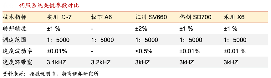 經(jīng)典案例:根據(jù)招股說(shuō)明書(shū)、浙商證券研究所等綜合資訊表明,禾川科技公司的伺服驅(qū)動(dòng)器搭載自主研發(fā)的編碼 器,在轉(zhuǎn)矩精度、速度波動(dòng)率、速度環(huán)帶寬、控制周期等性能參數(shù)方面整體上已接近國(guó)外主流品牌同類(lèi)可比產(chǎn)品水準(zhǔn),并可以配合多種總線(xiàn)控制,擁有自調(diào)整、模型跟蹤、制振等功能,大幅提高產(chǎn)品易用性的同時(shí)可以有效抗擾動(dòng)并保持運(yùn)行穩(wěn)定。