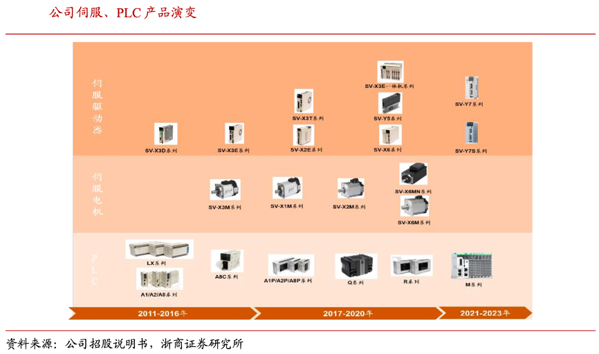 經(jīng)典案例:根據(jù)公司招股說(shuō)明書、浙商證券研究所等綜合資訊表明,禾川科技公司主力產(chǎn)品每年穩(wěn)步更新迭代,多產(chǎn)品系列滿足不同控制需求。公司 2015 年自主 研發(fā)第一代伺服驅(qū)動(dòng)器和伺服電機(jī)以來(lái),目前已經(jīng)形成 Y 系列 高階伺服、X5 系列進(jìn)階型伺服、X3E 通用型伺服、X2 E 簡(jiǎn)易型伺服、J 系列一體機(jī)等伺服 驅(qū)動(dòng)器,覆蓋客戶差異化需求。