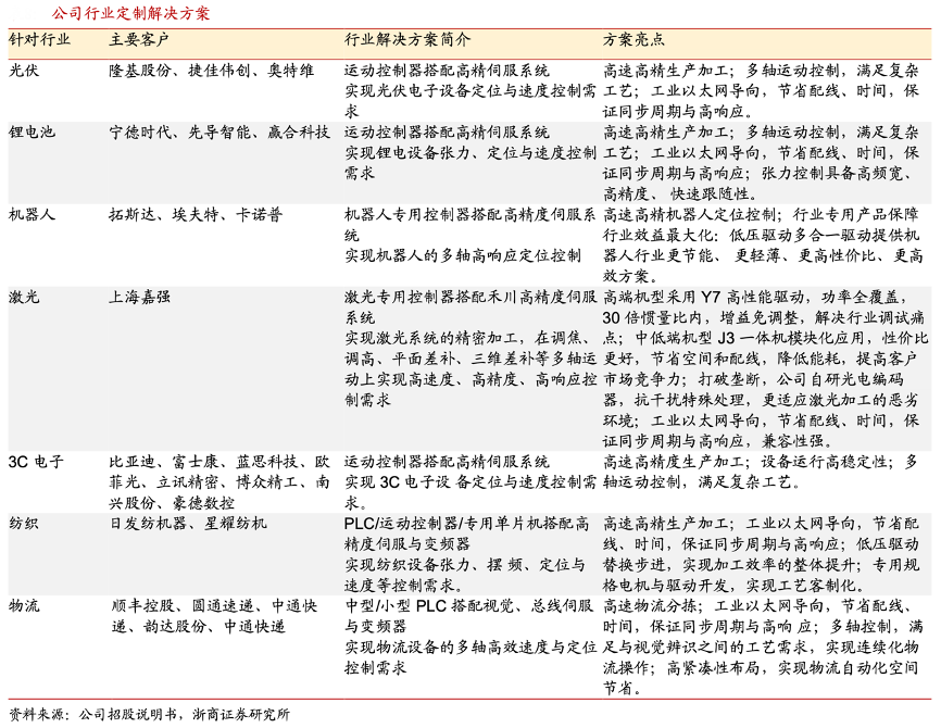 經(jīng)典案例:根據(jù)公司招股說明書、浙商證券研究所等綜合資訊表明,禾川科技發(fā)揮產(chǎn)品組合優(yōu)勢,打造多場景解決方案。其充分發(fā)揮控制、驅(qū)動、傳感、 機電一 體化等產(chǎn)品組合優(yōu)勢,在光伏、鋰電、機器人、激光等多個行業(yè)擁有深入的個性化解決方案。