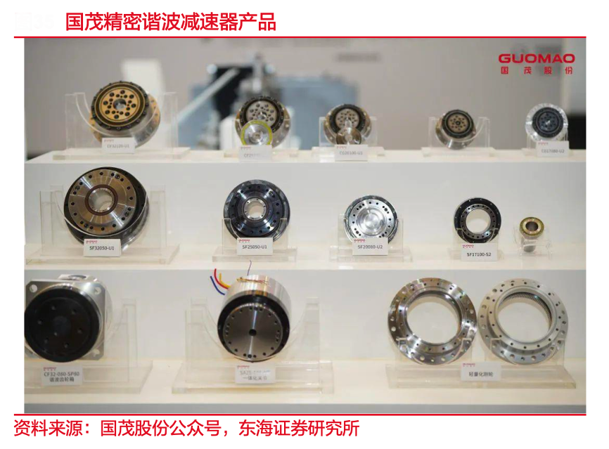 經(jīng)典案例:根據(jù)國茂股份公眾號、東海證券研究所等綜合資訊表明,2023年國茂精密完成生產(chǎn)基地搬遷工作,諧波減速器產(chǎn)品研發(fā)推廣有序推進(jìn),目前產(chǎn)品速比可按需定制。諧波減速器在人形機(jī)器人領(lǐng)域應(yīng)用廣闊,以 Optimus 為 例,所有旋轉(zhuǎn)執(zhí)行器均需配備諧波減速器。