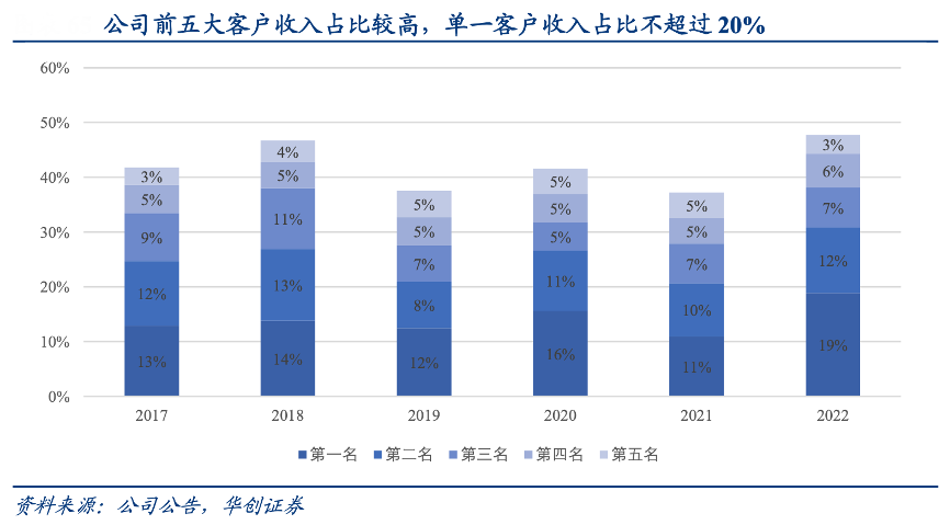 經(jīng)典案例:根據(jù)公司公告、華創(chuàng)證券等綜合資訊表明,天孚通信公司憑借較強(qiáng)的研發(fā)能力、良好的品質(zhì)口碑、快速響應(yīng)服務(wù)能力、規(guī)?;慨a(chǎn)能力、穩(wěn)健務(wù)實(shí)的運(yùn)營(yíng)能力,已成為多家業(yè)界主流客戶的首選供應(yīng)商。目前公司前五大客戶的收入之和占比已超過 40%,在業(yè)界主流客戶的覆蓋優(yōu)勢(shì)較為明顯,同時(shí)單一客戶收入占比不超過 20%,對(duì)單一客戶的依賴程度較低。