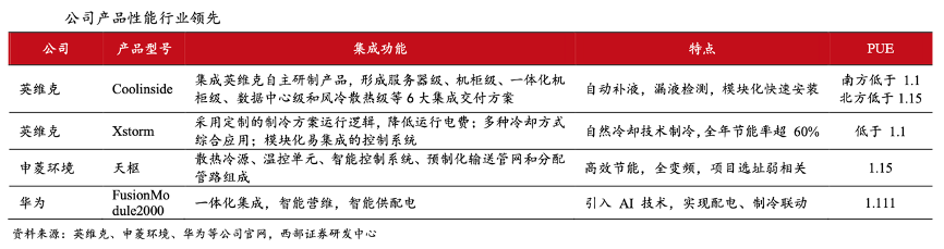 經(jīng)典案例:根據(jù)英維克招股說明書、西部證券研發(fā)中心等綜合資訊表明,英維克在公司整體平臺競爭優(yōu)勢下,其已經(jīng)具備提供端到端全鏈條產(chǎn)品和方案的能力。隨著大 型和超大型數(shù)據(jù)中心對能效要求更高、對建設(shè)速度要求越來越快,這些特點要求溫控供應(yīng)商具備技術(shù)創(chuàng)新能力和快速響應(yīng)能力、同時對產(chǎn)品的散熱效率和性價比也有更高的要求。
