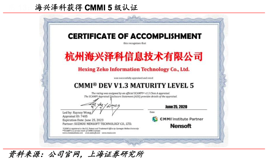 經(jīng)典案例:根據(jù)公司官網(wǎng)、上海證券研究所等綜合資訊表明,海興電力公司全資子公司海興澤科信息技術(shù)有限公司,已獲得國家重點軟件企業(yè)認(rèn)定,獲得全球最高等級 CMMI 5 級認(rèn)證,是行業(yè)內(nèi)極少數(shù)可面向全球市場提供高質(zhì)量軟件 集成服務(wù)的企業(yè)。
