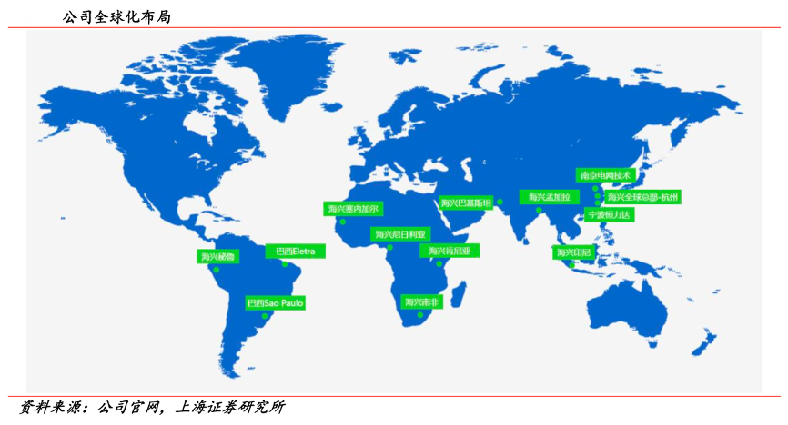 經(jīng)典案例:根據(jù)公司官網(wǎng)、上海證券研究所等綜合資訊表明,海興電力公司依托拉美、非洲、亞洲、中東、歐洲五大海外區(qū)域總部 構(gòu)建全球營銷網(wǎng)絡(luò),產(chǎn)品銷往全球 90 個(gè)多國家和地區(qū),其中一帶一路國家 46 個(gè)。