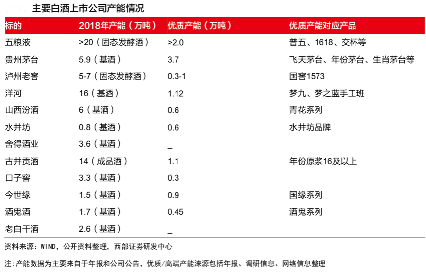 各白酒知名品牌多以“優(yōu)質(zhì)產(chǎn)能”對應(yīng)“生產(chǎn)優(yōu)質(zhì)產(chǎn)品”,以優(yōu)質(zhì)產(chǎn)品支撐“白酒品牌形象”,如在優(yōu)質(zhì)產(chǎn)能方面,至2020 年五糧液酒產(chǎn)能有望達(dá)到 3 萬噸,優(yōu)質(zhì)酒產(chǎn)能僅次于茅臺。
