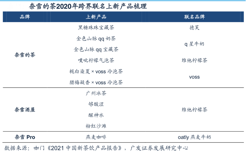 經(jīng)典案例:根據(jù)咖門《2021中國(guó)新茶飲產(chǎn)品報(bào)告》、廣發(fā)證券發(fā)展研究中心等綜合資訊表明,奈雪的茶近年來(lái)聯(lián)名跨界合作頻出,通過(guò)和人民日?qǐng)?bào)、抖音、王者榮耀、李寧等不 同領(lǐng)域的機(jī)構(gòu)和公司以及各種美術(shù)展、藝術(shù)展的合作,組織線上和線下推廣活動(dòng),推出限量版茶飲、茶杯以及推出聯(lián)名新品等嘗試,加強(qiáng)在消費(fèi)者各類生活場(chǎng)景的滲透,傳達(dá)品牌形象和品牌文化。