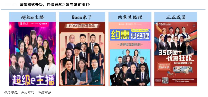 經(jīng)典案例:根據(jù)公司官網(wǎng)、中信建投等綜合資訊表明,居然之家全國超 310 家門店借助淘寶直播等渠道開展了數(shù)萬場直播,為門店蓄客十余萬人。
