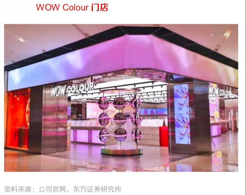 經(jīng)典案例:根據(jù)公司官網(wǎng)、東方證券研究所等綜合資訊表明,WOW Colour首家門店于2020年1月在廣州西城都薈開業(yè),與 130+網(wǎng)紅彩妝品牌達(dá)成合 作,著重引進(jìn)線下專柜較少的國(guó)貨品牌。“玩新鮮、玩品質(zhì)、玩體驗(yàn)、玩?zhèn)€性”,針對(duì)95后、00后消費(fèi)群體,打造線上線下消費(fèi)聯(lián)動(dòng)的超大型網(wǎng)紅彩妝集合店。