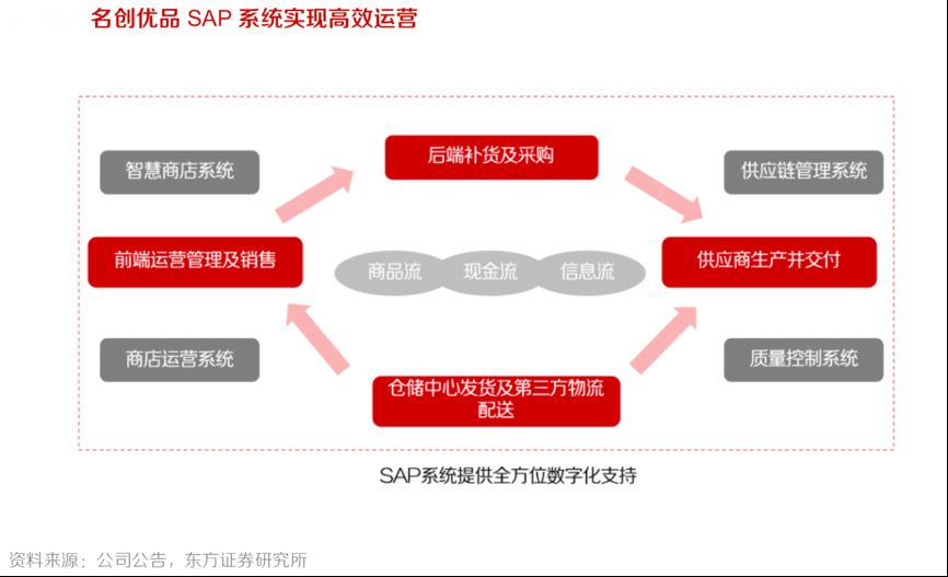 經(jīng)典案例:根據(jù)公司公告、東方證券研究所等綜合資訊表明,名創(chuàng)優(yōu)品的標(biāo)準(zhǔn)門店面積在150-300m²之間,且外倉較小,單店平均庫存維持在 2 天左右,因此高度依賴供應(yīng)鏈配送體系。通過集成 IT 信息系統(tǒng)、倉儲物流系統(tǒng)及內(nèi)部管理系統(tǒng),其大規(guī)模整合供應(yīng)鏈,使其產(chǎn)品可以實現(xiàn)國內(nèi) 21 天全周轉(zhuǎn)。2020 財年,名創(chuàng)優(yōu)品公司物流費用占收入比重不到 2%。