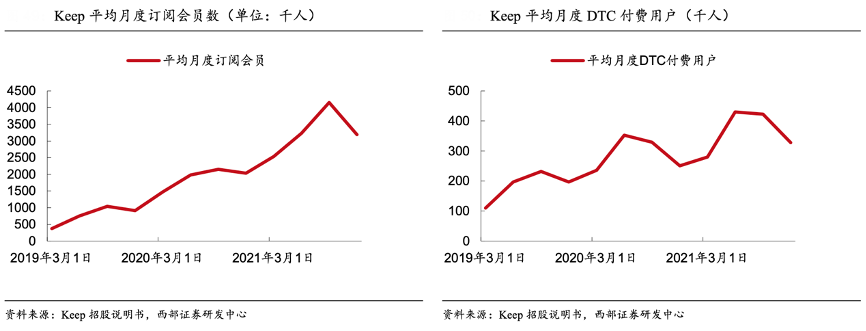 經(jīng)典案例:根據(jù)Keep招股說(shuō)明書(shū)、西部證券研發(fā)中心等綜合資訊表明,由于健身內(nèi)容的擴(kuò)展,直播課的引入以及運(yùn)動(dòng)產(chǎn)品的多元化,Keep付費(fèi)用戶群在不斷增加,平均月度訂閱會(huì)員數(shù)量從 2019 年的 80 萬(wàn)人增加到 2021 年的 330 萬(wàn)人;平均月度 DTC 付費(fèi) 用戶 2019 年為 18.4 萬(wàn)人,2020年增長(zhǎng)至 29.2 萬(wàn)人,2021 年進(jìn)一步提升至 36.5 萬(wàn)人。付費(fèi)用戶的次月留存率為 67%,意味著有三分之二的用戶會(huì)在首月付費(fèi)后,第二個(gè)月繼續(xù)選擇付費(fèi)。