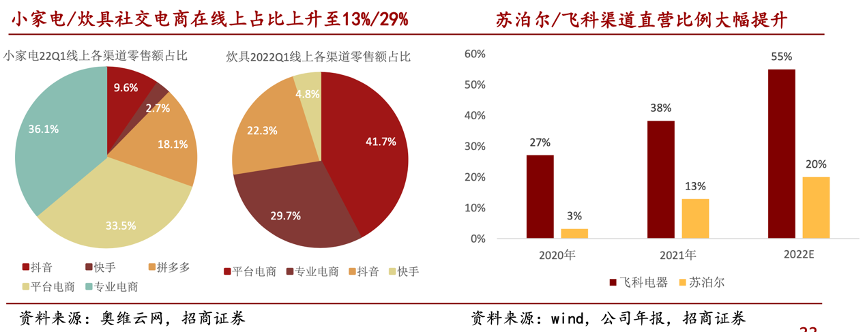 經(jīng)典案例:根據(jù)奧維云網(wǎng)、wind、公司年報、招商證券等綜合資訊表明,社交電商放量:2022Q1以抖音、快手為代表的社交電商渠道占小家電銷售額比例上升至13%,占炊具品類線上銷售額比例上升至29%。