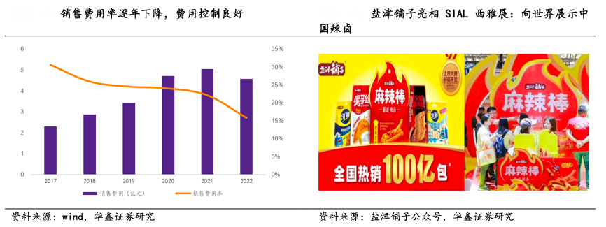 經典案例:根據(jù)wind、鹽津鋪子、華鑫證券研究等綜合資訊表明,鹽津鋪子公司將線上電商作為品牌推廣的重要渠道,自 2020 年開始,線上電商聚焦 “大單品戰(zhàn)略”,線上線下協(xié)同,共同復利大單品,在各個細分品類形成領導品牌心智。近期,公司亮相 SIAL 西雅展展示辣味賽道的鹽津鋪子的品牌力和購買力。