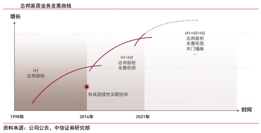 經(jīng)典案例:根據(jù)公司公告、中信證券研究部等綜合資訊表明,志邦家居公司產品包括整體廚房、全屋定制、定制木門/墻板、整體衛(wèi)浴、家具配套、軟裝等整體家居產品,并通過融合大店模式將各類產品融合銷售,提升銷售配套率。