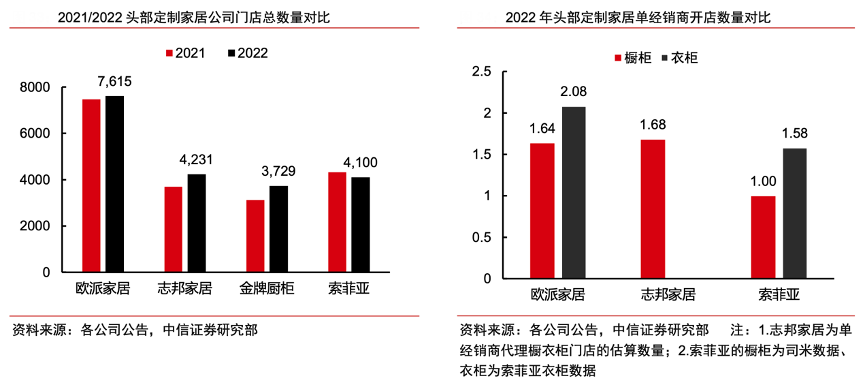經(jīng)典案例:根據(jù)各公司公告、中信證券研究部等綜合資訊表明,志邦家居公司店態(tài)融合的方向包括:1)櫥衣融合:新開設(shè)展廳以融合大店為主,陳列廚房、 衛(wèi)生間、陽(yáng)臺(tái)、衣柜、軟體、木門和墻板等產(chǎn)品,公司 2022-2023 年計(jì)劃每年開設(shè)櫥衣融合店200家。2)衣柜與軟體家具配套銷售:2022年公司衣柜內(nèi)配套品收入占比約 10%(vs 歐派20%),提升空間仍較大,公司將衣柜與軟體家具配套銷售,提升衣柜配套品收入。