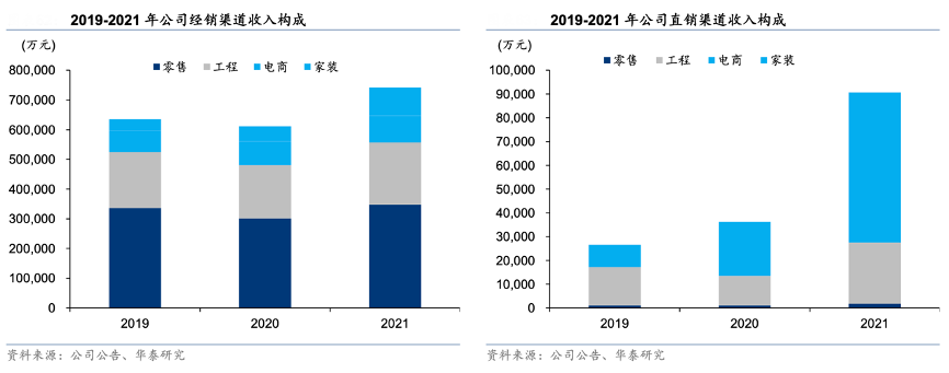 經(jīng)典案例:根據(jù)公司公告、華泰研究等綜合資訊表明,目前箭牌家居的銷售模式為經(jīng)銷為主,而經(jīng)銷模式以 C 端零售為主,2022年,公司經(jīng)銷渠道收入約 66 億元,同比下降11.0%,占總收入 88.0%。同時其打造出覆蓋零售、工程、電商、家裝等全渠道營銷體系,2022年零售/工程/電商/家裝渠道收入占比分別為41.4%/24.6%/20.1%/13.9%。