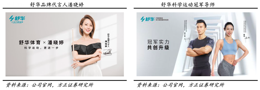 經(jīng)典案例:根據(jù)公司官網(wǎng)、方正證券研究所等綜合資訊表明,舒華簽約品牌代言人,利用新媒體平臺矩陣式推廣。2022 年,公司簽約九球天后潘曉婷作為品牌代言人,聘請健美健身世界冠軍鄭少忠、亞洲冠軍滕雨作為舒華科學(xué)運動冠軍導(dǎo)師,并簽約中國環(huán)法騎行第一人計成成為舒華品牌車類產(chǎn)品推薦官,通過運動明星致力于創(chuàng)新科學(xué)運動解決方案。