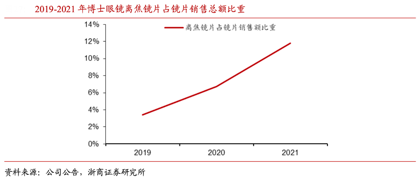 經(jīng)典案例:根據(jù)公司公告、浙商證券研究等綜合資訊表明,離焦鏡可眼鏡店售賣,員工的專業(yè)程度決定了孩子佩戴離焦眼鏡的舒適性,進而影響服務(wù)和品牌口碑,如其對點瞳技術(shù)要求高,需要員工利用配鏡貼紙來確定驗配的準(zhǔn)確性。博士眼鏡由于具有較強的專業(yè)服務(wù)能力,離焦鏡片在鏡片銷售額中的占比逐年提高,2021 年占比達12%,2022H1 公司近視防控離焦鏡片銷量同比增長 23%,銷售額同比增長40%。