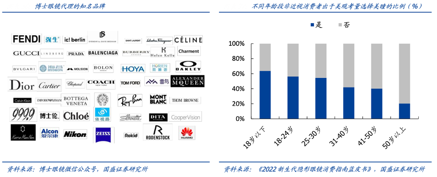 經(jīng)典案例:根據(jù)博士眼鏡微信公眾號、《2022新生代隱形眼鏡消費指南藍皮書》、國盛證券研究所等綜合資訊表明,博士眼鏡公司與眾多國際知名奢侈品牌和本土時尚品牌合作,推出適合不同年齡段和不同使用場景的潮流太陽鏡。此外,隨著隱形眼鏡逐漸進入潮流彩妝板塊,公司積極發(fā)力美瞳與隱形眼鏡市場,與多個國內(nèi)外美妝隱形眼鏡品牌及代理商進行深度合作,拓寬時尚美妝產(chǎn)品矩陣。