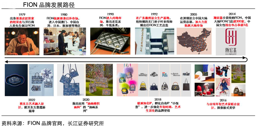 經(jīng)典案例:根據(jù)FION品牌官網(wǎng)、長(zhǎng)江證券研究所等綜合資訊表明,潮宏基收購(gòu) FION 后,與全球先鋒藝術(shù)家合作設(shè)計(jì),聯(lián)合“小黃人、菲力貓、侏羅紀(jì)、 大英博物館”等世界知名 IP 展開推新,并相繼推出自主設(shè)計(jì)的“小怪獸系列”“油畫系 列”,強(qiáng)化 FION 年輕時(shí)尚、藝術(shù)化的品牌調(diào)性;2022年,在潮宏基珠寶主品牌整體轉(zhuǎn)向國(guó)潮設(shè)計(jì)風(fēng)格的趨勢(shì)下,F(xiàn)ION順勢(shì)推出融合東方設(shè)計(jì)風(fēng)格的新款油畫系列。