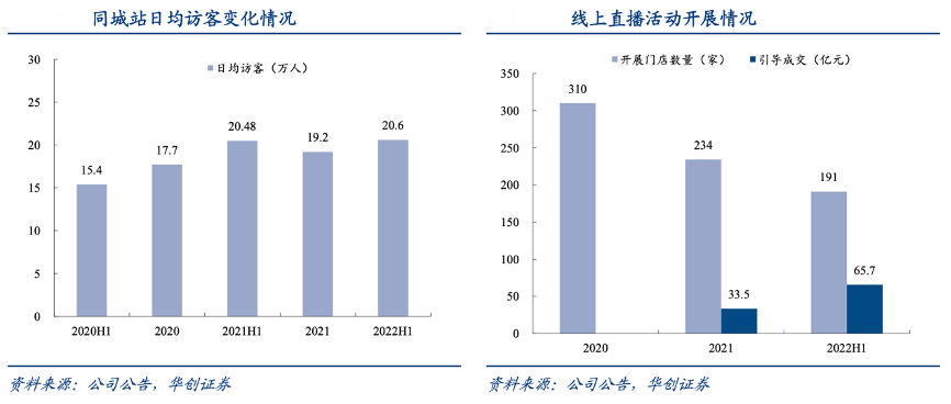 經(jīng)典案例:根據(jù)公司公告、華創(chuàng)證券等綜合資訊表明,依托由阿里賦能的線上平臺(tái)及線下門店數(shù)字化能力, 居然之家可以利用淘寶直播平臺(tái)進(jìn)行線上營(yíng)銷,實(shí)現(xiàn)線下門店流量增長(zhǎng)及引導(dǎo)成交。 2019-2021 年,同城站引導(dǎo)成交額從 12.2 億元大幅提升至 133 億元。2022 年上半年,同城站業(yè)務(wù)覆蓋全國(guó) 130 個(gè)城市,日均訪客達(dá) 20.6 萬(wàn)人次,同比增長(zhǎng) 5%;線上獲客 75.8 萬(wàn)人,同比增長(zhǎng) 138%;引導(dǎo)到店銷售 65.7 億元,同比增長(zhǎng) 38%;“老汪來(lái)了”直播 當(dāng)天店鋪 UV 突破 210 萬(wàn)。