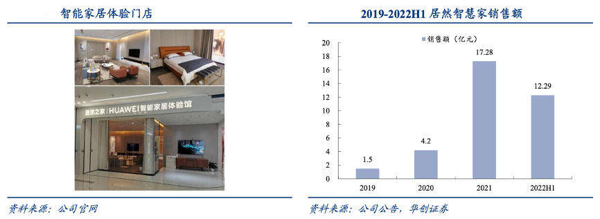 經(jīng)典案例:根據(jù)公司官網(wǎng)、公司公告、華創(chuàng)證券等綜合資訊表明,居然智慧家“洞腦”聚焦智能家居業(yè)務(wù),依托蘋果、華為智能家居系統(tǒng)代理打通數(shù)據(jù)流,實(shí)現(xiàn)沉浸式智能生活體驗(yàn),用戶可通過 APP 對(duì)家中不同類型智能家居進(jìn)行統(tǒng)一管理,此外,也可通過 APP 購(gòu)買智能家居設(shè)備。2021 年居然智慧家實(shí)現(xiàn)銷售 17.28 億元,同比增長(zhǎng)321.7%;2022 年上半年,實(shí)現(xiàn)銷售 12.29 億元,同比增長(zhǎng)5.16%,目前累積開業(yè)和簽約 66 家門店,業(yè)務(wù)擴(kuò)展迅速。