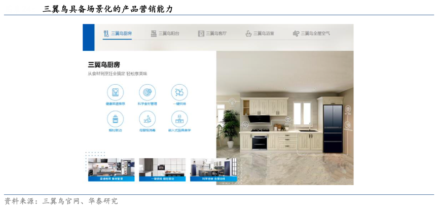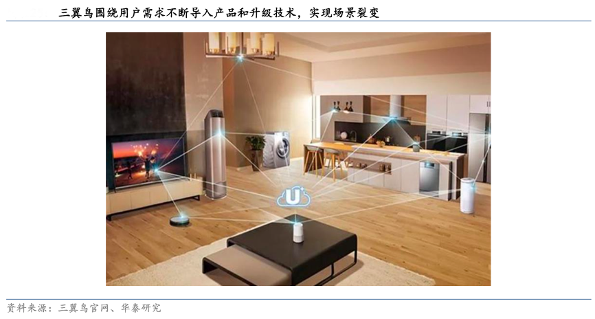 經(jīng)典案例:根據(jù)三翼鳥官網(wǎng)、華泰研究等綜合資訊表明,2020 年正式推出三翼鳥,三翼鳥是海爾智家旗下場景品牌,從賣產(chǎn)品到賣場景的新賽道, 提供陽臺、廚房、浴室、全屋空氣、全屋用水、視聽等智慧家庭全場景解決方案。其依托海爾智家體驗(yàn)云平臺,以“1+N” 能力保障落地,為用戶定制覆蓋衣、食、住、娛需求的美好生活,讓家庭物聯(lián)網(wǎng)走進(jìn)千家萬戶。