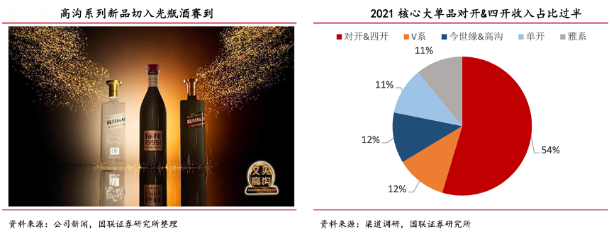 經(jīng)典案例:根據(jù)公司新聞、國聯(lián)證券研究所、渠道調(diào)研等綜合資訊表明,2022 年 8 月 27 日,今世緣舉辦“又見高溝—高溝品牌戰(zhàn)略暨新品上市發(fā)布會(huì)”,正式提出“高溝品牌復(fù)興戰(zhàn)”。產(chǎn)品設(shè)計(jì)上, 新高溝系列以標(biāo)樣為標(biāo)識(shí),目前已推出高溝標(biāo)樣 1995、高溝標(biāo)樣黑標(biāo)&白標(biāo),通過推出光瓶酒產(chǎn)品,搶占高線光瓶酒新賽道。同時(shí)高溝作為老名酒,聚焦品類創(chuàng)新,從中高線光瓶酒切入,以“黃淮名酒帶高端裝瓶酒典范”為標(biāo)量,進(jìn)行產(chǎn)品塑造和復(fù)興。