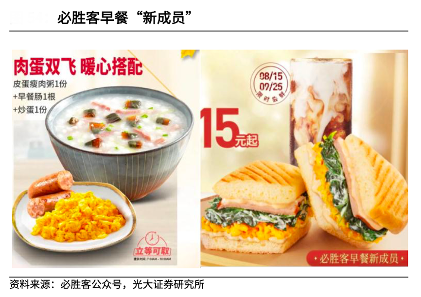 經(jīng)典案例:根據(jù)必勝客公眾號、光大證券研究所等綜合資訊表明,百勝中國公司采取多時段混合經(jīng)營策略,積極開發(fā)各時段產(chǎn)品,根據(jù)特定時段和特定場景供應(yīng)不同性質(zhì)產(chǎn)品,吸引不同時段消費(fèi)者。近年來,肯德基陸續(xù)推出夜宵小食及下午茶產(chǎn)品,必勝客則繼續(xù)豐富早餐品類。