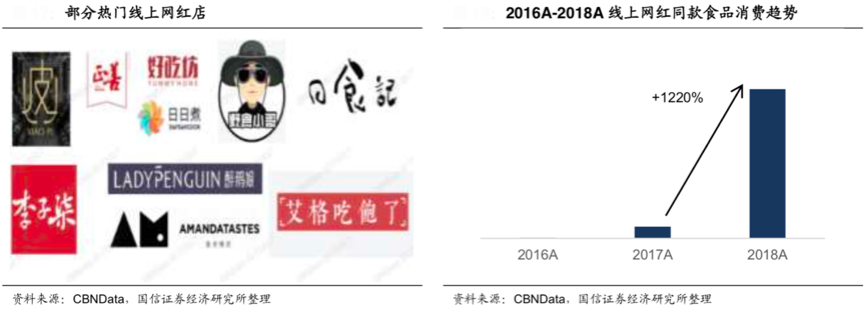 我們已經(jīng)身處數(shù)字化技術(shù)驅(qū)動的時代,網(wǎng)絡(luò)社交正成為我們?nèi)粘J称废M的一部分,有潮流感、有網(wǎng)絡(luò)感、有代入感的“網(wǎng)紅食品”日益成為一種“新食尚”。根據(jù)CBNData、國信證券經(jīng)濟(jì)研究所等綜合資訊表明,過去的線下?lián)屬忥L(fēng)潮也傳播到線上,一些以網(wǎng)紅為首的店鋪受到了很大歡迎,如李子柒、野食小哥等食品網(wǎng)紅的店鋪,2018年網(wǎng)紅食品線上銷售增速達(dá)到 1220%。